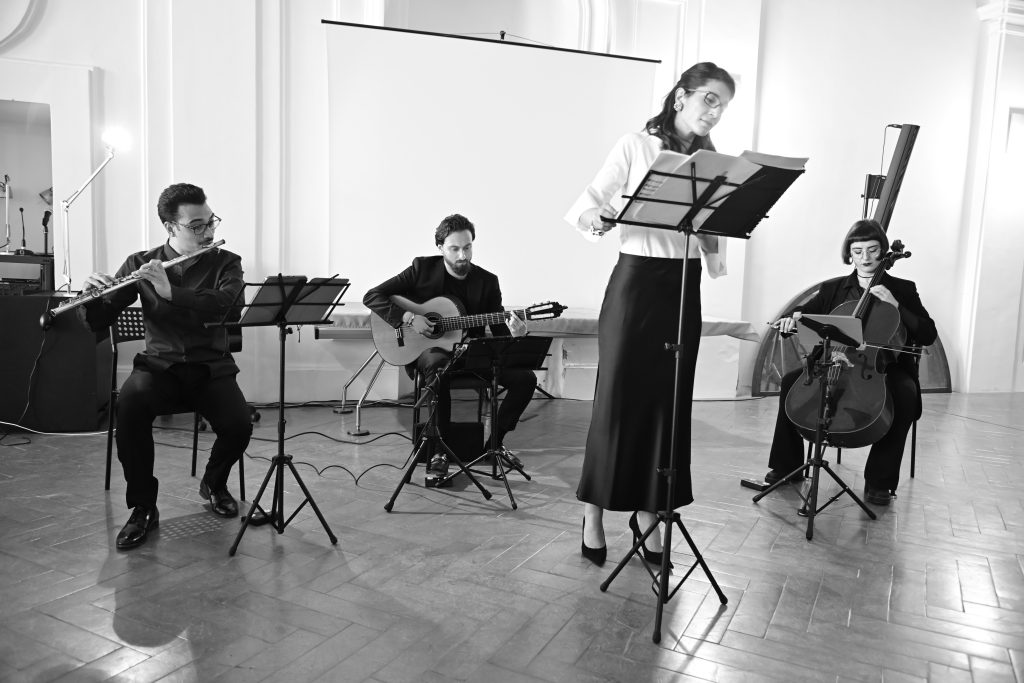 Il ricco programma della serata ci ha poi riservato da Lo frate ‘nnammorato di Pergolesi, la deliziosa Canzone di Vanella Chi disse ca la femmina, interpretate con delizia e passione dal mezzosoprano Emanuela de Rosa, impegnata anche in una importante e preziosa ricerca filologica sia dei testi che della musica, collaborando fattivamente inoltre alla trascrizione dei brani proposti da adattare per l’ensemble citato, che comprende Salvatore Scafarto alla chitarra, Monia Massa al Violoncello e Adrianalfonso Pappalardo al flauto.