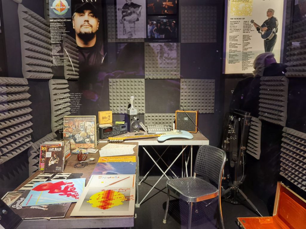 Oltre alle fotografie inedite e amatoriali della sua vita privata, gli abiti di scena, i suoi strumenti, le sue amate chitarre, non mancherà la sala immersiva dove poter ascoltare la sua musica live. Ci sarà anche uno spazio per sentire la registrazione inedita delle prove dei Batracomiomachia (audio originale del 1974), unica incisione esistente catturata durante una session del gruppo.