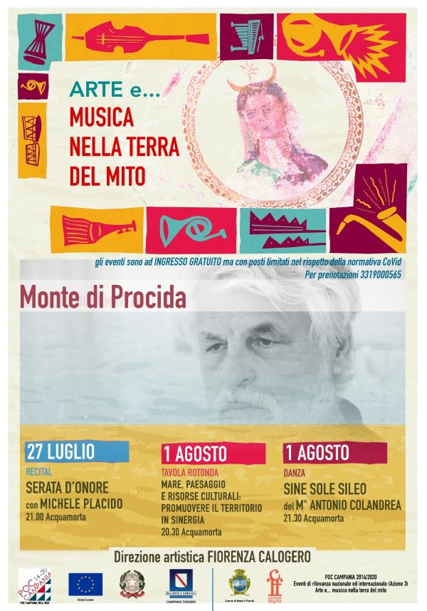 Nello splendido scenario di Acquamorta a Monte di Procida ritorna la kermesse Arte e …musica nella Terra del Mito: lunedì 27 luglio alle 21 Serata d’onore con l’immenso Michele Placido e il suo Recital, con poesie e monologhi di Dante, Neruda, Montale, D’Annunzio. Non mancheranno i versi dei più importanti poeti e scrittori napoletani come Salvatore di Giacomo, Raffaele Viviani, Eduardo De Filippo.