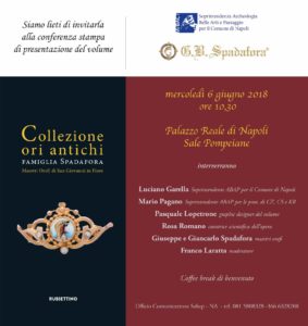 Mercoledì 6 giugno alle ore 10.30, le Sale Pompeiane del Palazzo Reale di Napoli ospiteranno la presentazione del volume Collezione ori antichi della Famiglia Spadafora. Maestri orafi di San Giovanni in Fiore (ed. Rubbettino). Il libro analizza, attraverso schede tecniche e storico-artistiche, una raccolta di oreficeria popolare calabrese fra Ottocento e Novecento, che il Mibact ha riconosciuto come patrimonio dell’arte italiana e che presto diventerà un’esposizione permanente.