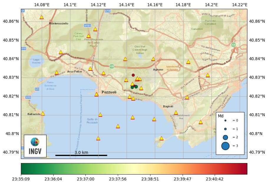 Campi Flegrei, nuova scossa nella notte: magnitudo 3.4