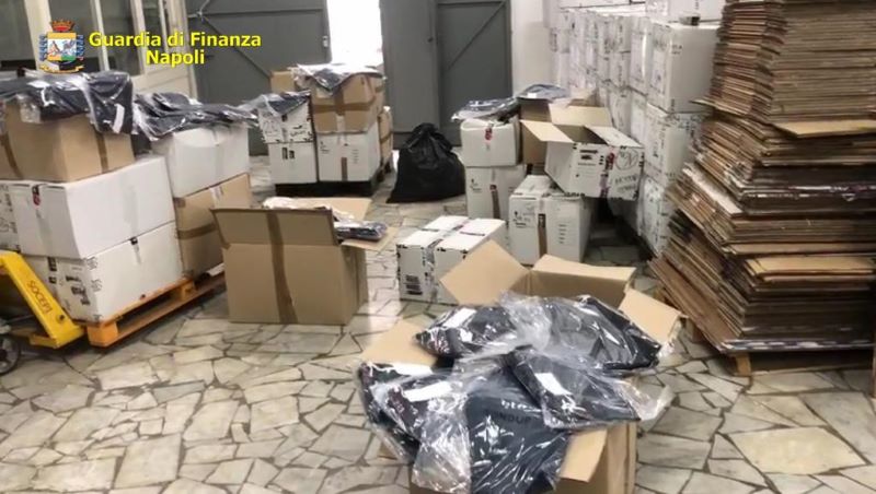 I “Baschi Verdi” del Gruppo Pronto Impiego hanno anche individuato un deposito nella disponibilità della stessa società utilizzato per stoccare altre decine di scatoloni contenenti ulteriori indumenti contraffatti.