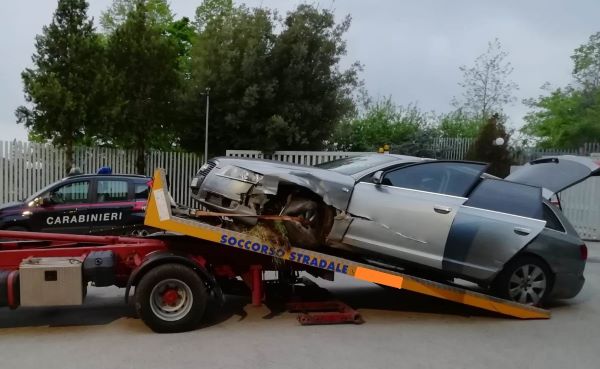 Nel corso delle ricerche diramate il veicolo veniva intercettato da personale dell’autoradio del Nucleo Operativo e Radiomobile della Compagnia di Cerreto Sannita, mentre si allontanava a forte velocità dal centro di Faicchio, ne nasceva un inseguimento lungo la strada Statale Telesina che terminava allo svincolo per Gioia Sannitica, dove il mezzo andava a sbattere contro un guard-rail, tuttavia gli occupanti riuscivano a scappare e dileguarsi nelle campagne circostanti.