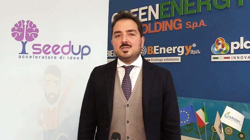 Il nostro obiettivo è quello di essere al fianco ai giovani innovatori italiani per cercare di accompagnare e aiutare tutte le neo imprese che si stanno cimentando nella transizione ecologica”, afferma Angelo Bruscino (nella foto in alto), consigliere d’amministrazione della Green Energy Holding, nel corso della presentazione dell’iniziativa.