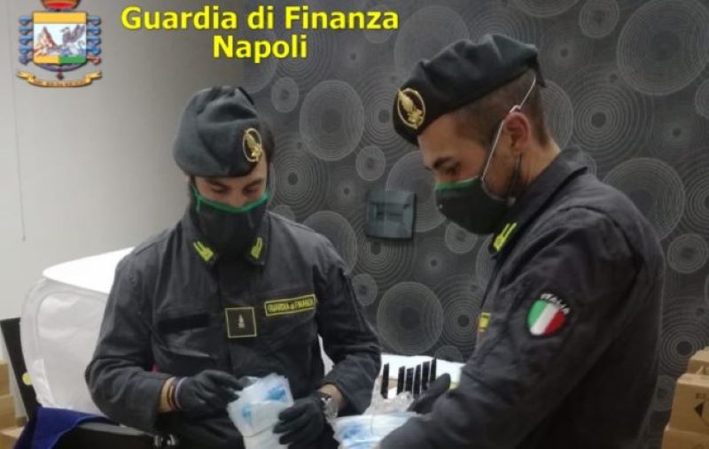 Cronaca di Napoli: la Finanza ha sequestrato tra Gragnano e Poggiomarino 6000 mascherine e gel igienizzante privi di autorizzazioni. Arrestato pusher che percepiva il reddito di cittadinanza.