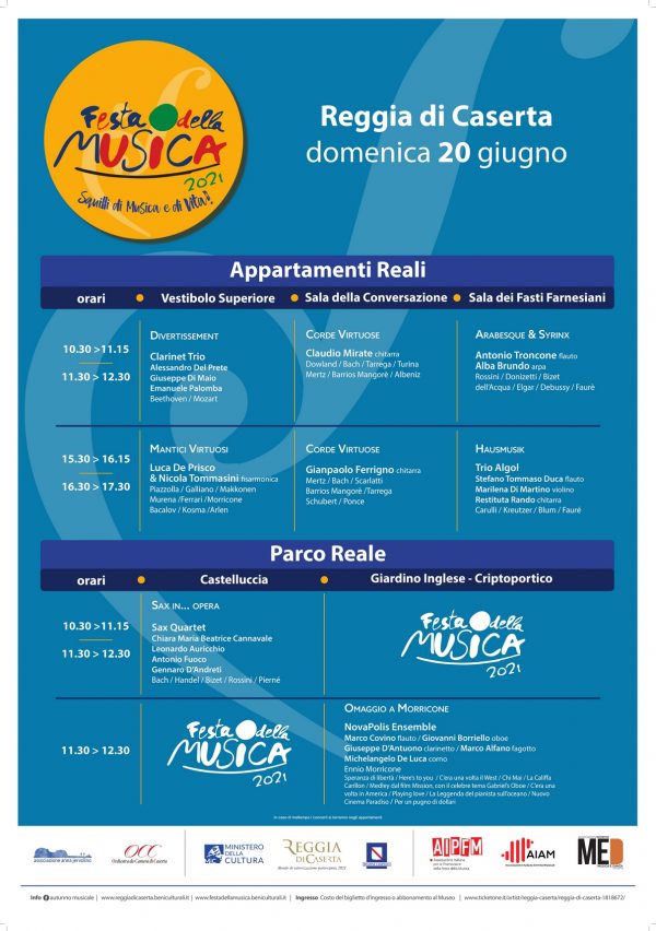 L’evento, in programma domenica 20 giugno 2021 dalle ore 10.30 alle ore 17.30, è realizzato dall’associazione “Anna Jervolino” e dall’Orchestra da Camera di Caserta in collaborazione con la Reggia di Caserta ed il sostegno del Ministero della Cultura e della Regione Campania.