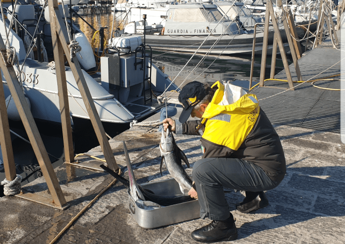 Guardia di Finanza: occupanti di un natante avevano pescato 3 esemplari di pesce spada di dimensioni molto inferiori a quelle tollerate dalla legge. Gli esemplari sono stati donati in beneficenza.