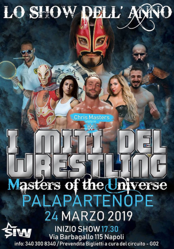 Napoli – Il grande wrestling torna al Palapartenope di Napoli il prossimo 24 marzo:“I Miti del Wrestling: Masters of the Universe” è il titolo dello show più importante dell’anno nel Sud Italia.