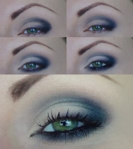 Ecco come procedere per sfumare l’ombretto nero (nel frattempo ti mostro come ho realizzato questo make up!). Per questo trucco si deve utilizzare un ombretto nero, un ombretto nocciola, un ombretto color carne, una matita nera ed un mascara nero.