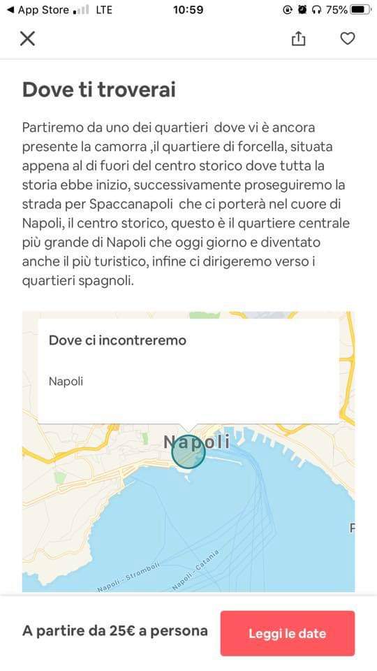“Andremo in tutti i luoghi centrali della città dove potrai capire con semplici spiegazioni come opera la mafia e cosa fanno. Cammineremo tra i vicoli del centro storico, Forcella e i quartieri spagnoli dove c’è ancora attività criminale anche se non riesci a vederlo. Il tour si svolgerà solo nella zona centrale dove un tempo non era molto turistico e molto pericoloso ma ora è diventato molto più sicuro e inoltre sarai guidato da me che sono una persona del posto.”– viene descritto nella sezione “Cosa aspettarsi” del tour in questione sul sito Tripadvisor.