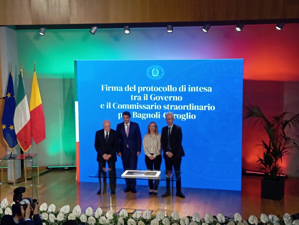 Meloni e Manfredi firmano il Protocollo d’intesa per gli interventi di risanamento ambientale e rigenerazione urbana dell’ex area Italsider di Bagnoli.