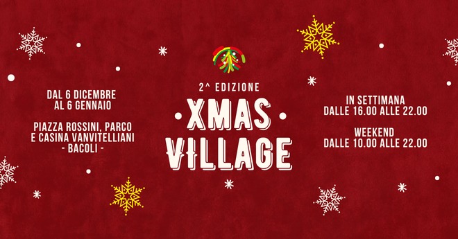 Dal 6 dicembre al 6 gennaio torna il X’MAS Village a Bacoli. Un evento da non perdere per tutta la famiglia, come riportato nel post pubblicato su Facebook. Il villaggio sarà aperto tutti i giorni dalle ore 16.00 alle ore 22.00 durante la settimana e dalle ore 10.00 alle ore 22.00 nei weekend.
