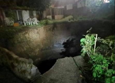La prima ipotesi è che la la voragine possa essere stata causata dalle abbondanti piogge di questa notte.