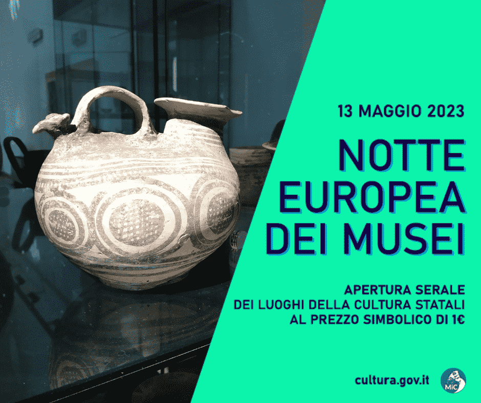 Sabato 13 maggio 2023 torna la Notte Europea dei Musei, l’iniziativa promossa dal Ministero della Cultura e patrocinata dall’Unesco, dal Consiglio d’Europa e dall’ICOM, che vede l’apertura serale di tutti i luoghi della cultura statali, con l’obiettivo di incentivare e promuovere la conoscenza del patrimonio e dell’identità culturale nazionale ed europea.