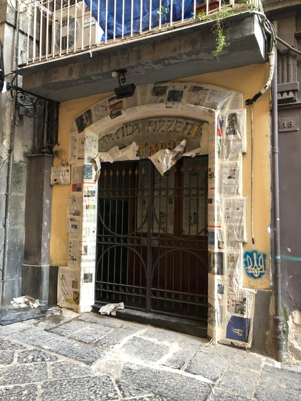 “L’Antica Pizzeria Port’Alba 1738”, vittima del furto delle antiche lettere di ottone che componevano la centenaria insegna.