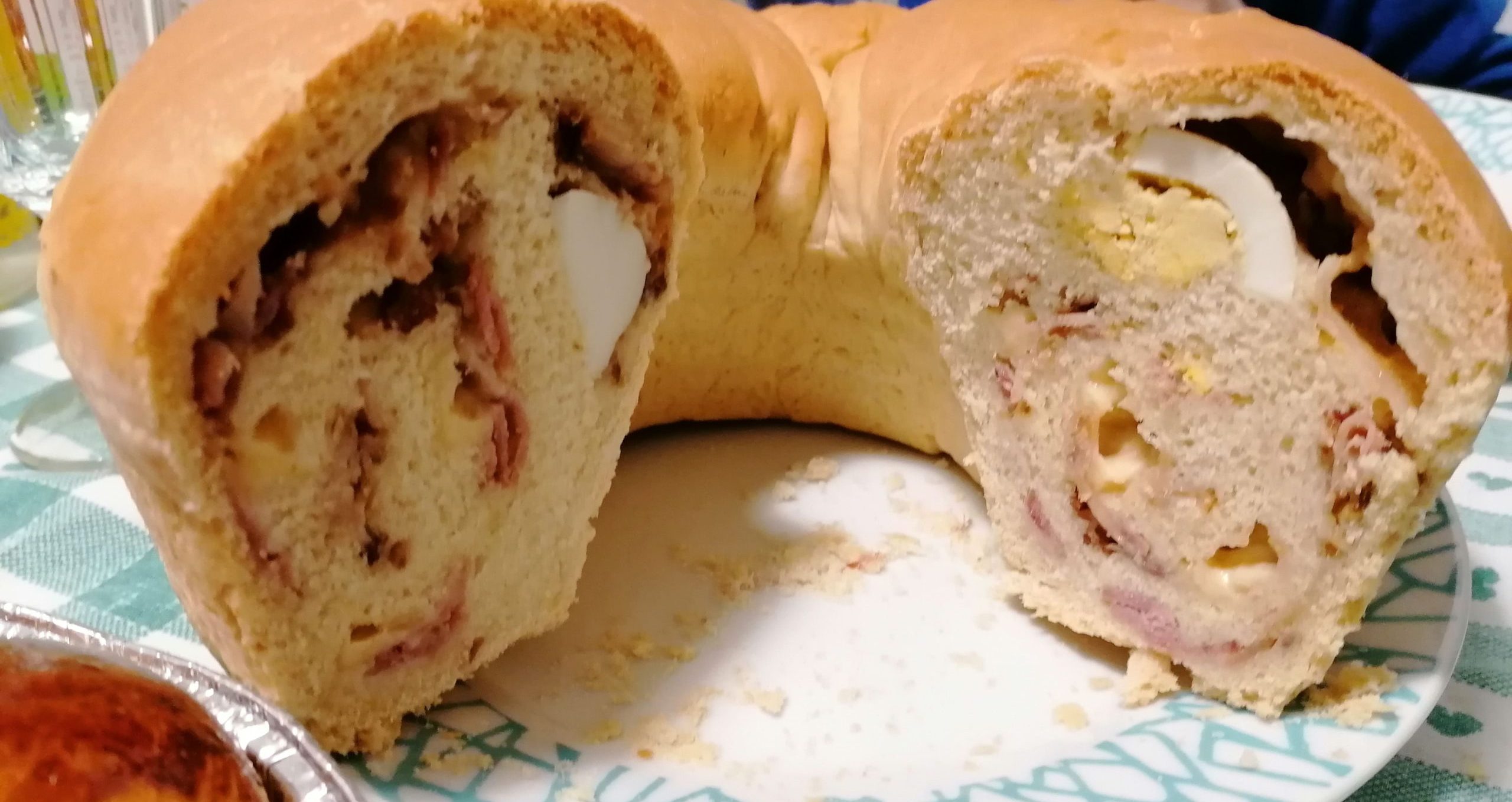 Lavorare fino ad ottenere un impasto liscio e morbido. Controllare all’interno (tagliando con un coltello) se ci sono bollicine che indicano la buona lavorazione. Dopo stendere l’impasto con un mattarello cercando di non creare strati troppo sottili (ricordate che dovrà contenere tutta l’imbottitura). Aggiungere i salumi, formaggio e uova preparati in precedenza, con attenzione a distribuire bene gli ingredienti su tutto lo strato di impasto. Arrotolare unendo le parti estreme e posizionare il rotolone in un ruoto alto con buco precedentemente unto con olio.