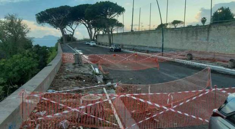 Saranno i rilievi della Napoli Servizi a stabilire se le numerosissime buche lasciate dagli alberi sradicati sono alla base del crollo del manto stradale (in cui erano mischiati acqua, detriti e fango).