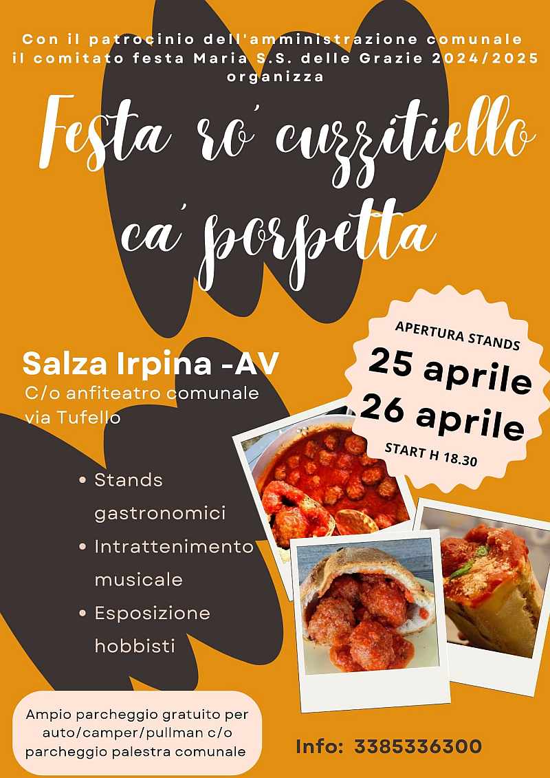 La Festa dedicata alla polpetta si svolgerà il 25 e 26 APRILE dalle ore 18.30 a SALZA IRPINA (AV) anfiteatro comunale in via Tufello.