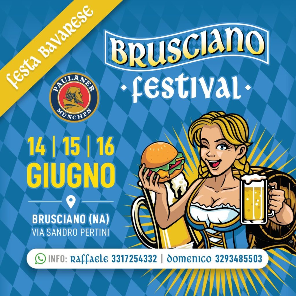 Nel weekend del 14-15-16 Giugno 2024 – sul Brusciano Festival Bavarese, la grande festa in stile bavarese, all’insegna del divertimento e del cibo con tantissimi ospiti.