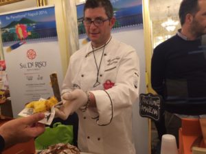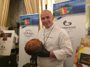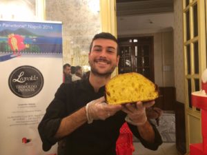 valorizzare le ricette Tradizionali Nazionali, ma soprattutto i loro maestri, talentuosi artigiani. A cornice della manifestazione presenza del wine bar curato dall’Associazione Italiana Sommelier, Delegazione di Napoli per degustare in abbinamento ai panettoni, vini dolci, passiti e spumanti del Consorzio di Tutela dei Vini del Sannio e i distillati della Trentina Distilleria Marzadro. In questa Edizione Partenopea 2016 c’è stato il Premio Re Panettone Napoli, assegnato da una giuria di esperti al miglior Panettone Innovativo e conquistato da Italo Vezzoli di Bergamo seguito dai due campani Mennella di Torre del Greco e Lombardi di Maddaloni. In Giuria, lo chef Antonio Tubelli, l’attore Patrizio Rispo, i giornalisti Santa di Salvo e Vincenzo d’Antonio, lo chef Eduardo Estatico e la scrittrice e foodblogger Benedetta Gargano. Tra le 25 Eccellenze stasera abbiamo incontrato: Francesco Guida, figlio d’arte dello Chef Stellato Peppe Guida chef stellato dell’Antica Osteria Nonna Rosa di Vico Equense, specializzato nella realizzazione di lievitati soffici, color dell’oro, alla mela annurca e cannella oppure il panettone con fiori e scorze d’arancia candite a cui aggiunge il liquore alle arance realizzato dalla sua adorata Nonna Rosa. Raffaele Vignola, pasticciere giovanissimo di