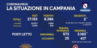 Covid 19 in Campania, bollettino dell’11 agosto: 2.290 positivi