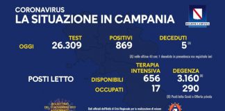 Covid 19 in Campania, bollettino dell’11 novembre: 869 positivi