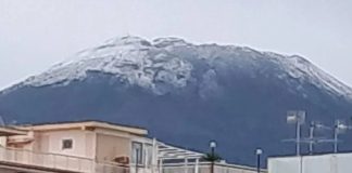 Prima neve del 2026 sul Vesuvio: il vulcano si risveglia imbiancato