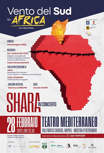 Sarà il palco del monumentale Teatro Mediterraneo di Napoli ad ospitare – VENERDÌ 28 FEBBRAIO 2025 ALLE 20.30 – “VENTO DEL SUD for AFRICA”, il grande concerto-evento ideato dalla cantautrice SHARA.