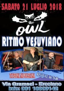 Straordinaria serata presso l’eclettico e ricercato locale “The Owl” di Ercolano dove è in programma in stile “Taverna Napoletana” un momento di spettacolo con musiche anni 60-70-80 tutto dedicato al “Ritmo Vesuviano”.
